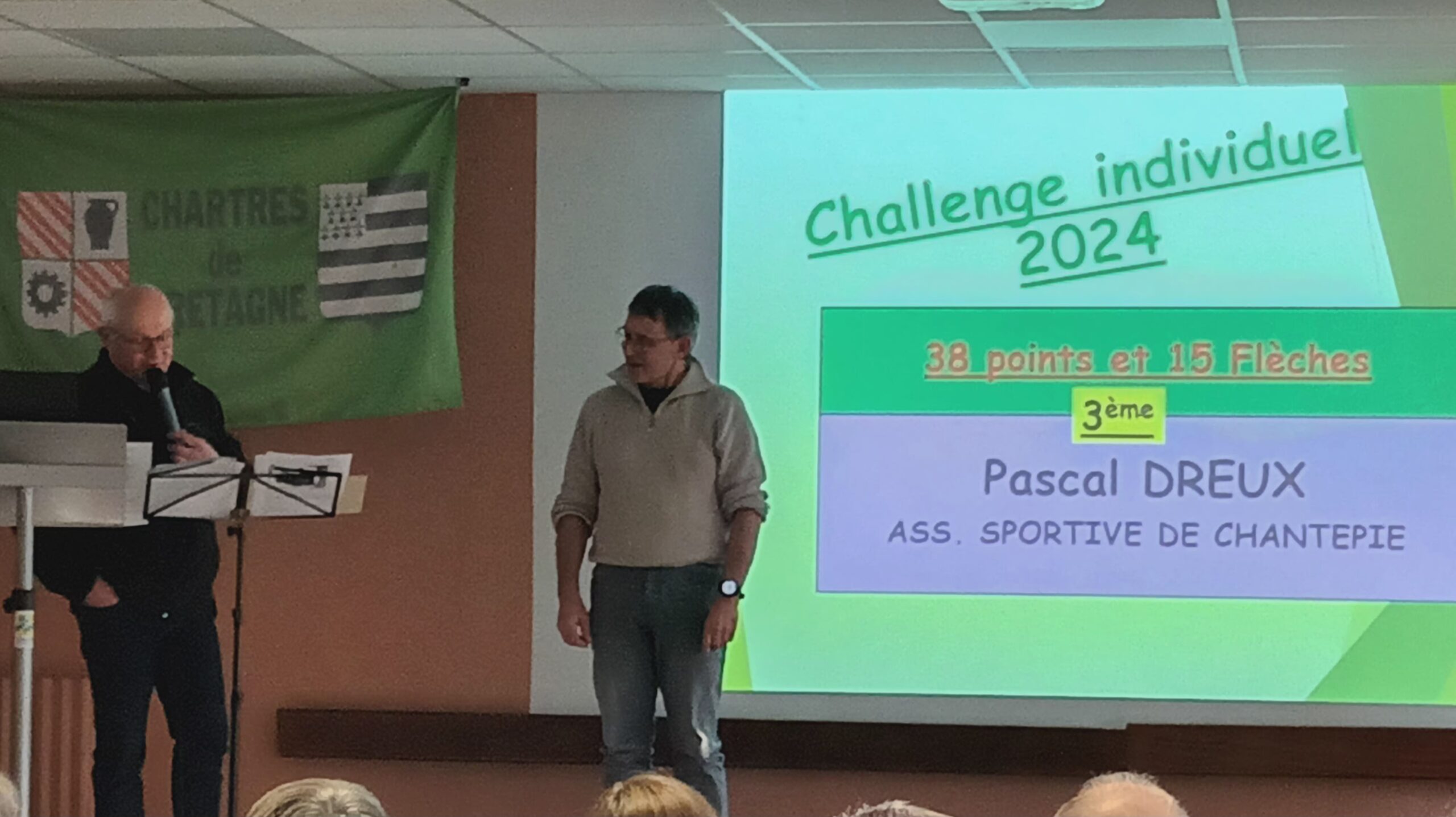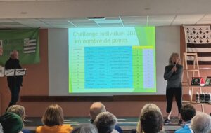 Le samedi 11 janvier, nous étions invités par le Club de Chartres de Bretagne pour la remise des trophées des Flèches de L’Ouest, à l’occasion de la 30ème cérémonie. L’ambiance était joyeuse entre cyclos bretons, normands et tourangeaux. Après une rétrospective faite par la nouvelle équipe organisatrice, les résultats sont tombés : c’est l’Union Sportive de Touraine qui nous a ravi le trophée avec 115 flèches et 271 points devançant l’ASC Chantepie avec 88 flèches et 174 points, heureusement que Nelly Alias a fini 4ème avec 29 flèches et 37 points, et que Pascal Dreux s’est hissé à la 3ème place en individuel avec 15 flèches et 38 points.