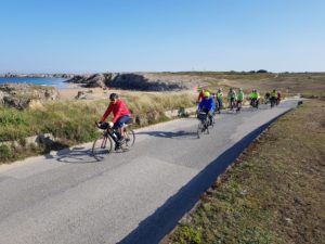 Deux groupes de 7 et 5 cyclos sont partis de Chantepie, tôt le Lundi 25, pour parcourir les 165km nous amenant à la presqu’Ile de Quiberon. Nous en avons profité pour réaliser la flèche de Vannes, avec ses pointages à Rennes, St Senoux, Rochefort en Terre, et Vannes. Nous sommes passés par Bourg des Comptes là où repose Marc. Une pensée émue en passant auprès de sa demeure, qui plus est, le jour de sa fête, la Saint Marc !